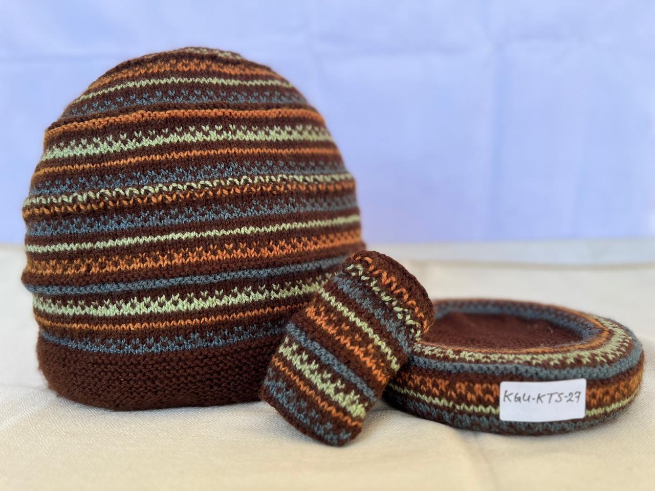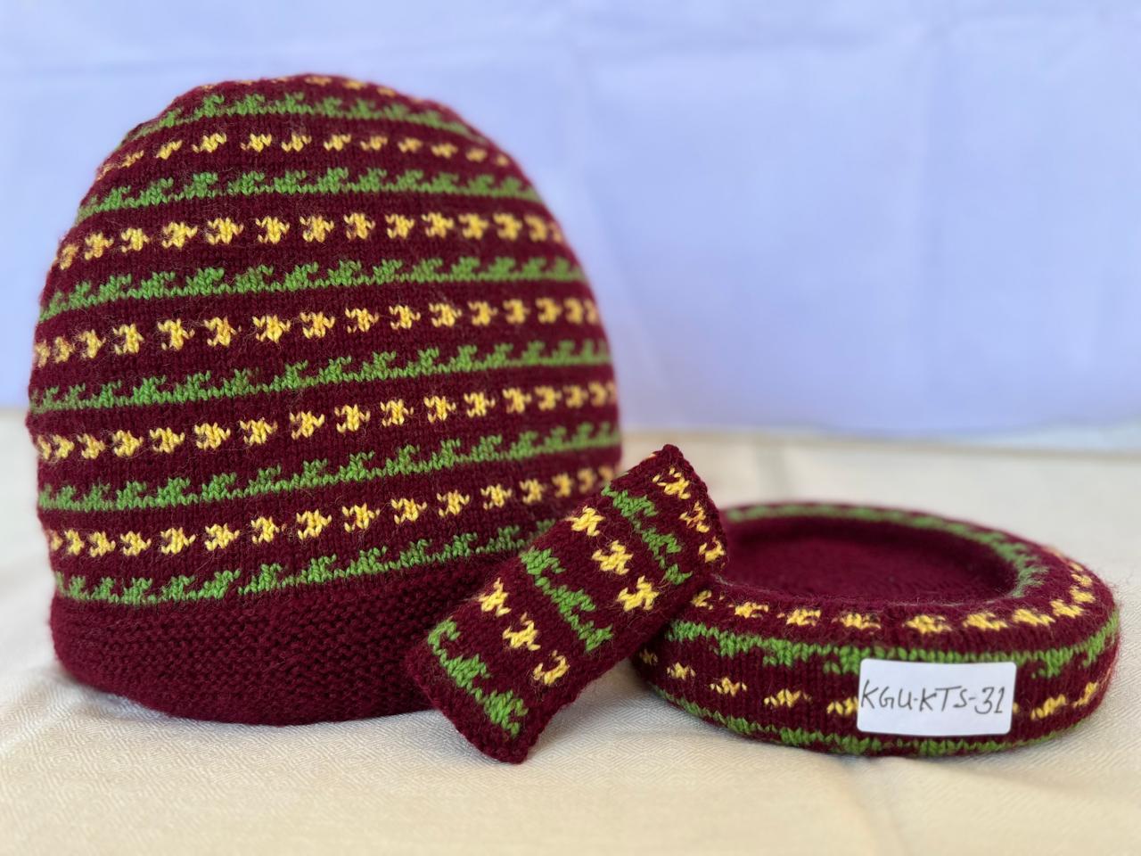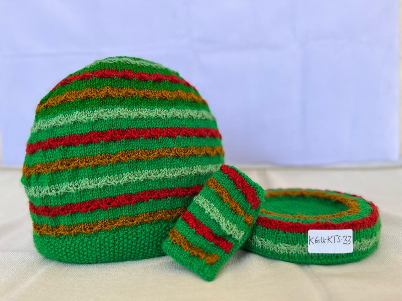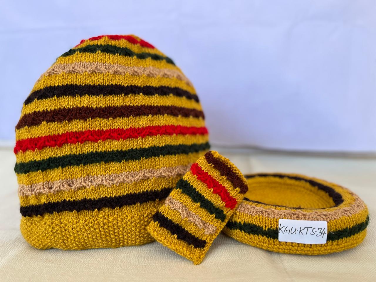 Our lovely tea cosy sets are handknitted by women artisans in Kumaon, Uttarakhand. They come with a base to keep the kettle on and a little flap to hold that handle. Ideal for enjoying that steaming cuppa to re-invigorate you. Each set is unique and has a different colour and design combination.