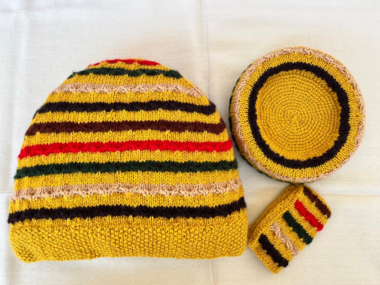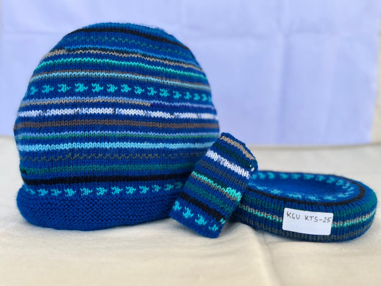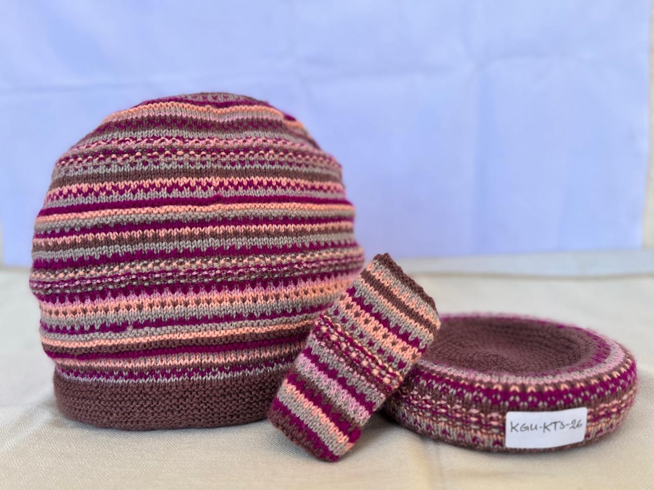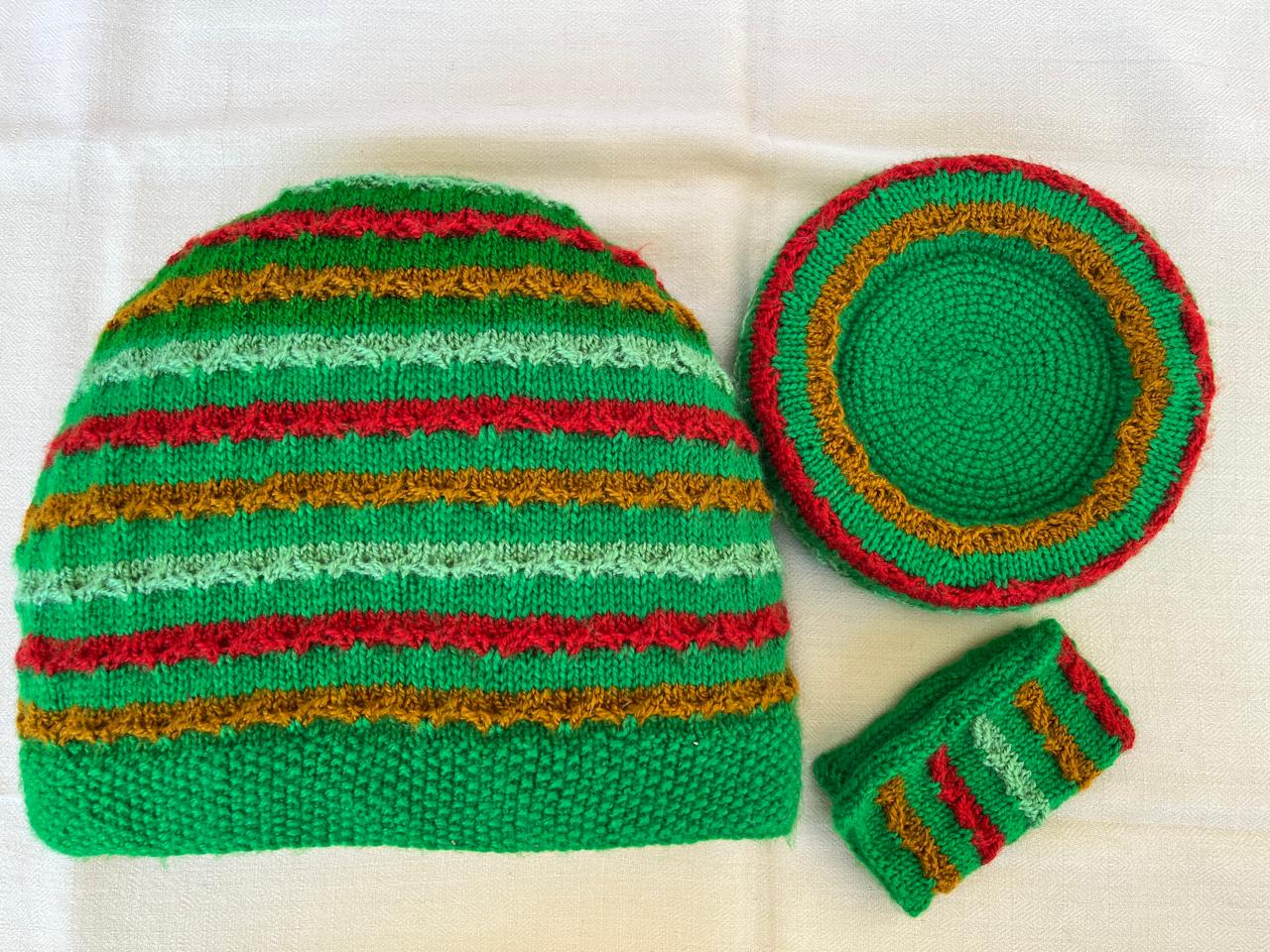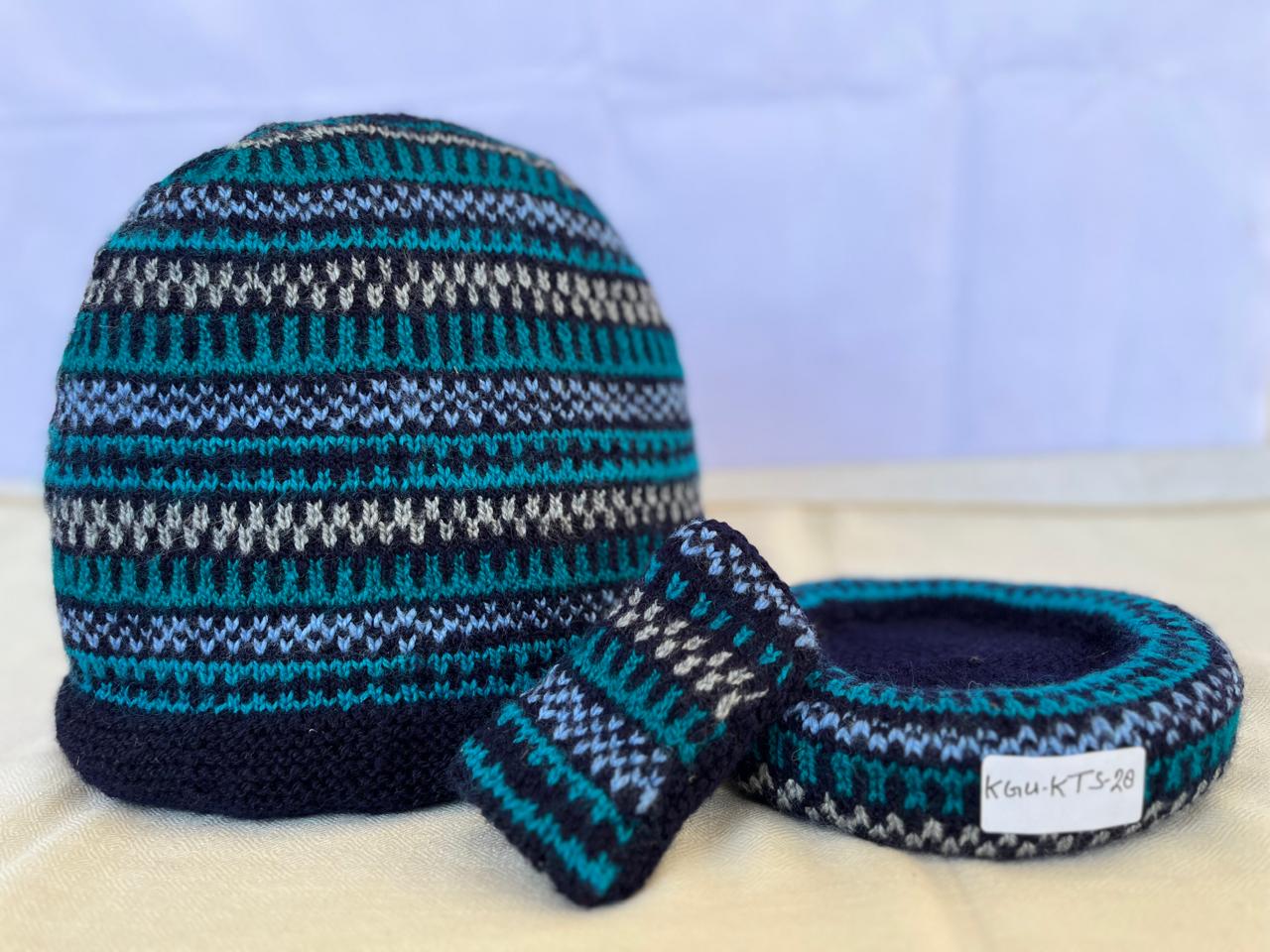 Our lovely tea cosy sets are handknitted by women artisans in Kumaon, Uttarakhand. They come with a base to keep the kettle on and a little flap to hold that handle. Ideal for enjoying that steaming cuppa to re-invigorate you. Each set is unique and has a different colour and design combination.