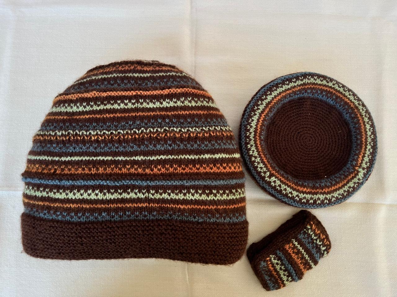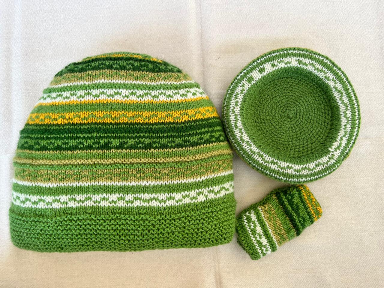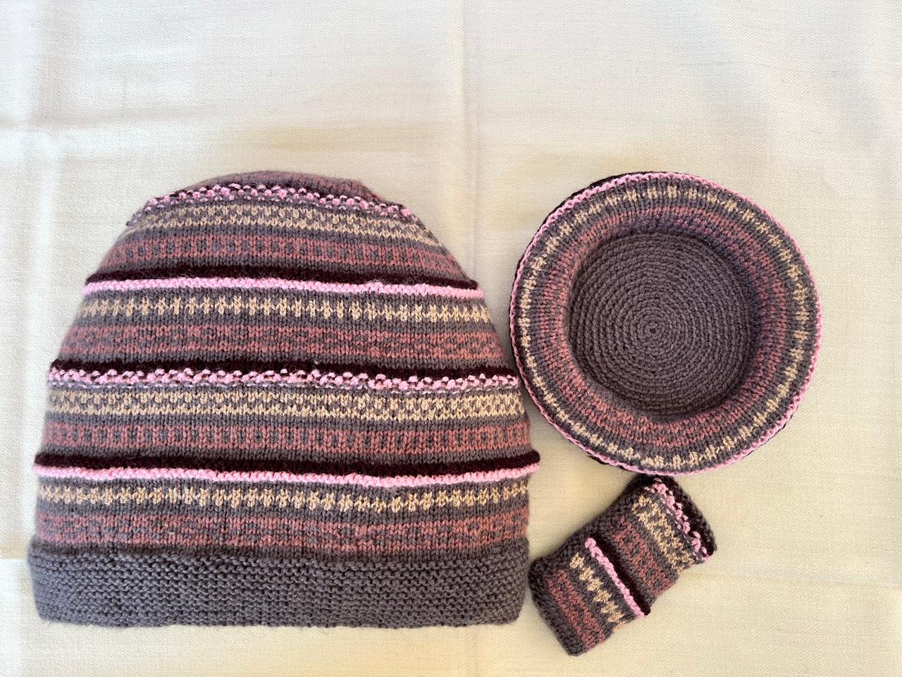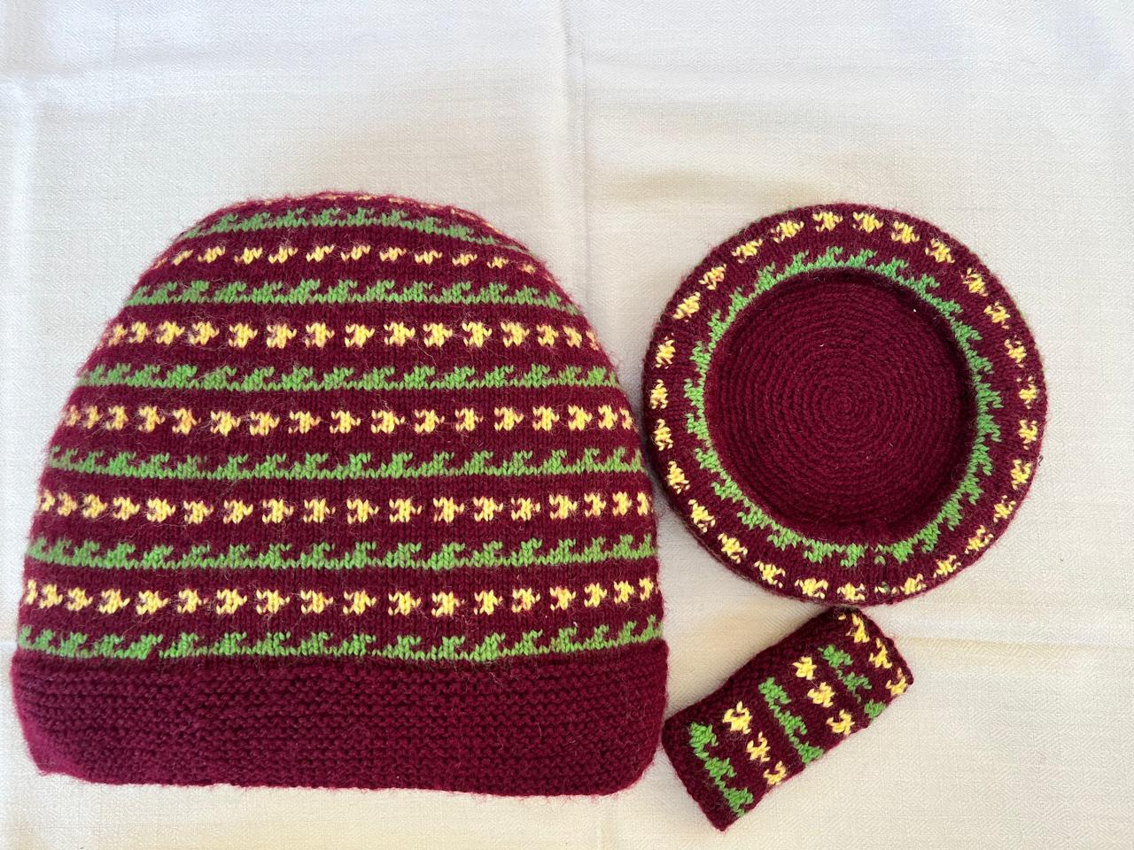Our lovely tea cosy sets are handknitted by women artisans in Kumaon, Uttarakhand. They come with a base to keep the kettle on and a little flap to hold that handle. Ideal for enjoying that steaming cuppa to re-invigorate you. Each set is unique and has a different colour and design combination.