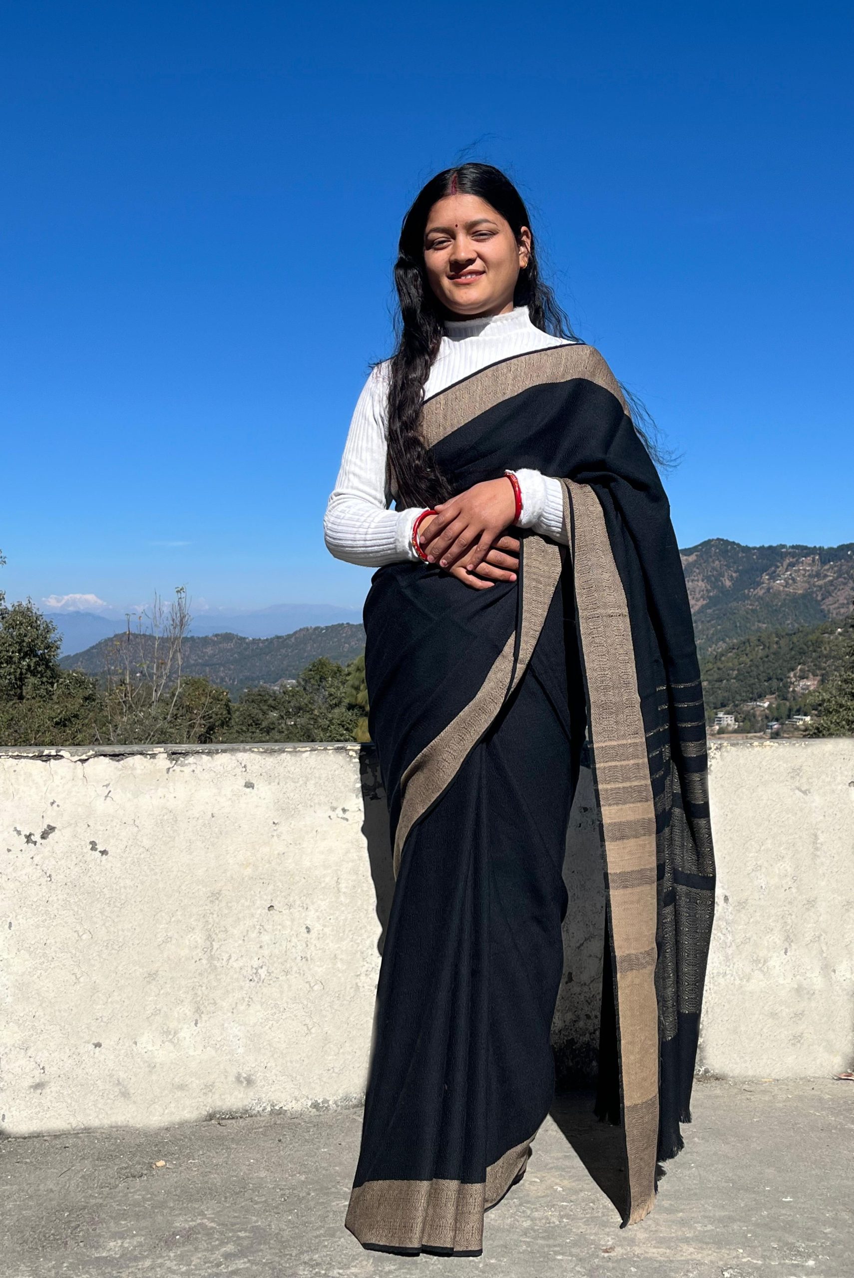 Hand-woven Woollen Saree – Black Gold (CR47 IV-1)